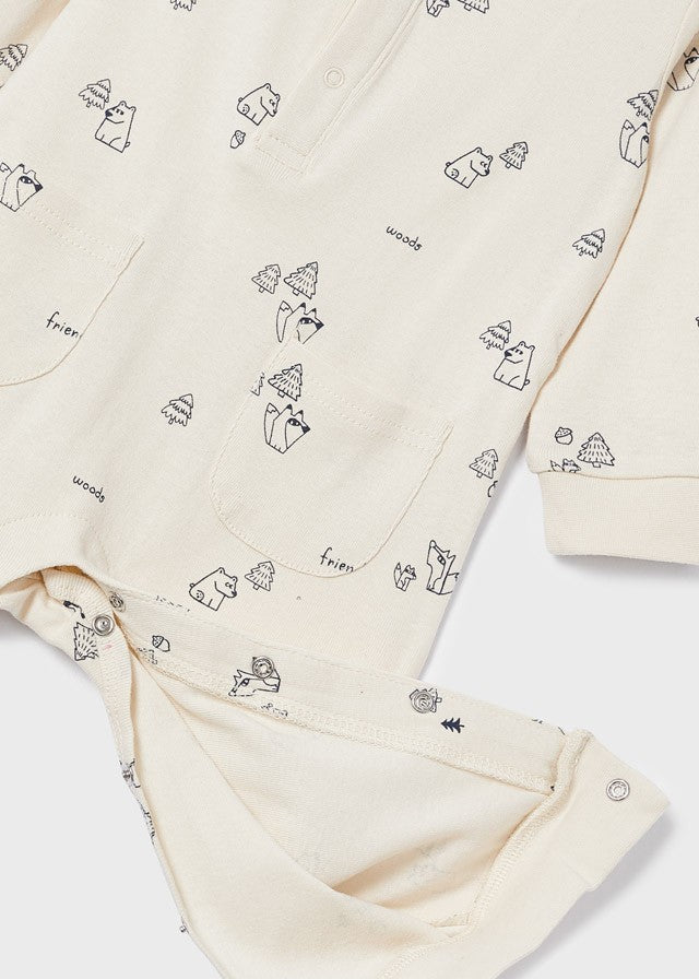 Cotton baby jumpsuit and hat for a boy from MAYORAL. Made of soft and elastic cotton fabric. Fastens with tic-tac buttons. Suitable for everyday life during the spring months.