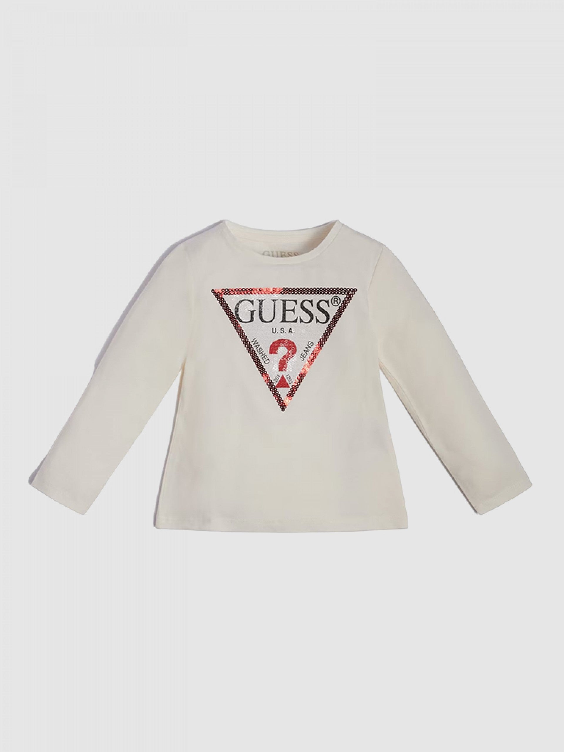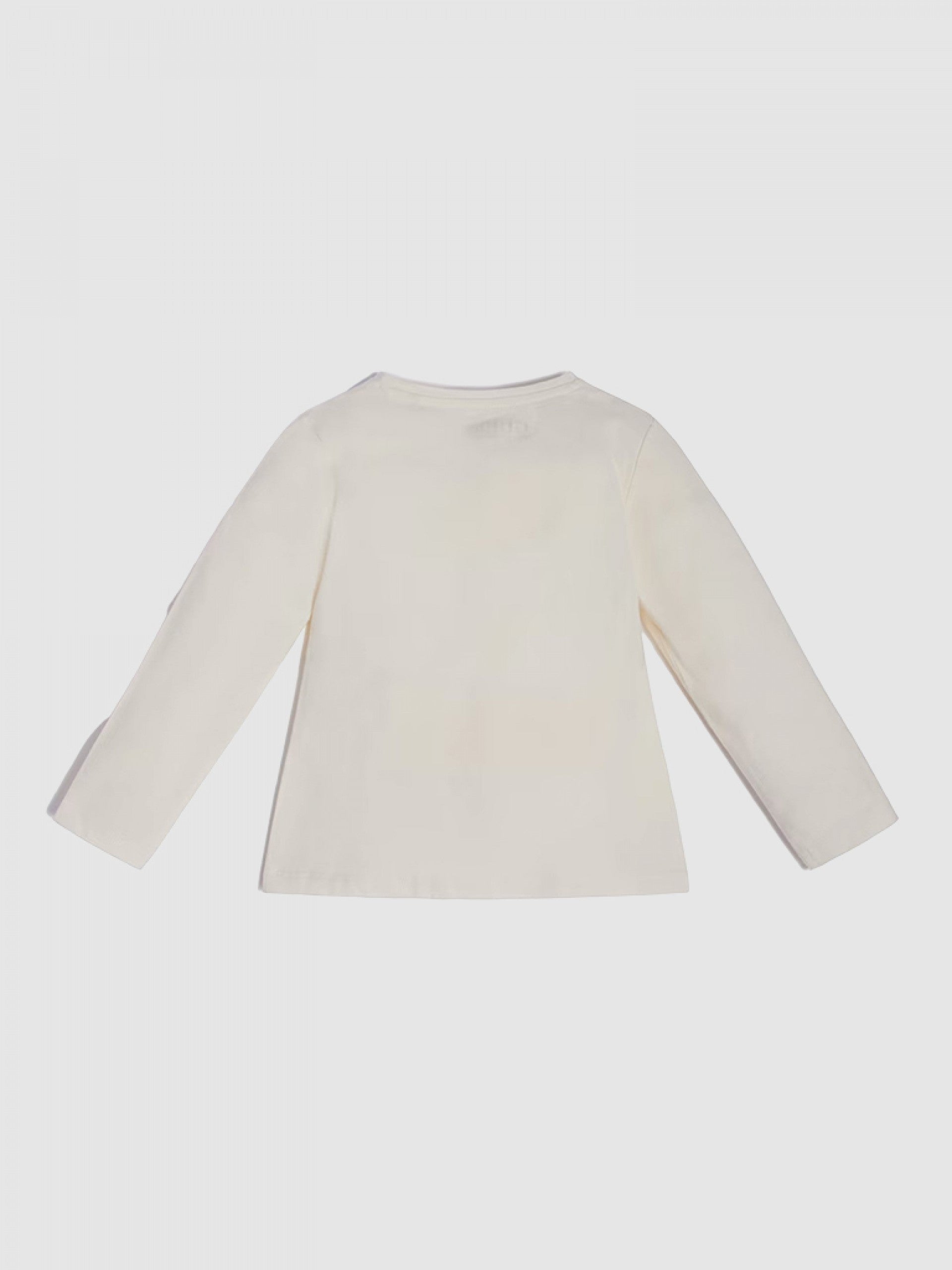Kids' blouse with long sleeves, round neckline, straight cut by Guess. Clean design with colorful applique, suitable for any look.