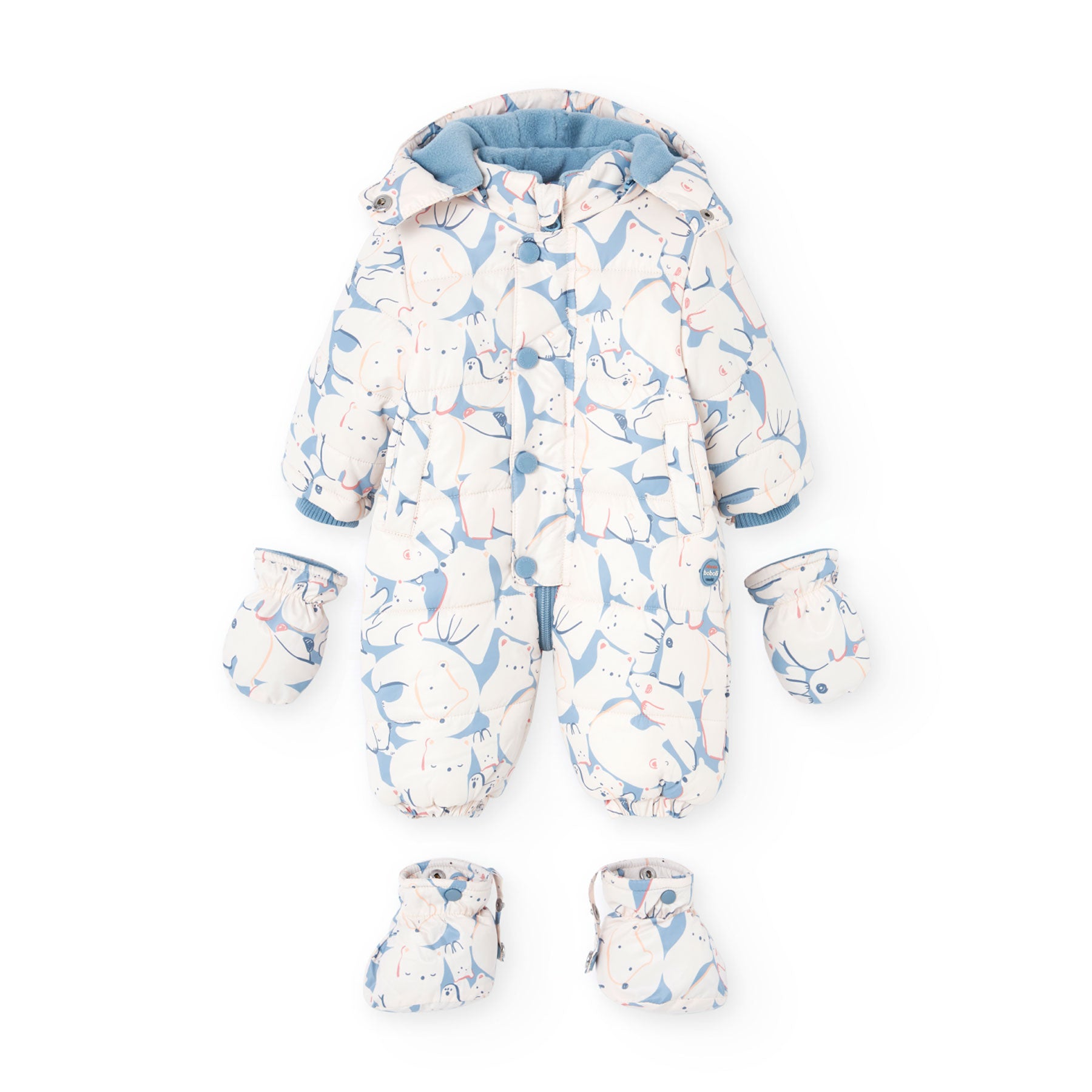Children's winter jumpsuit for babies with animal prints is the perfect choice to keep your little one warm during the cold months. Made of quilted material, it guarantees warmth and comfort during winter days. Its design includes a padded hood and a front zip fastening for easy dressing, as well as gloves and boots that provide full protection from the cold. Ideal for parents looking for style and functionality, ensuring that their baby is always warm and protected.