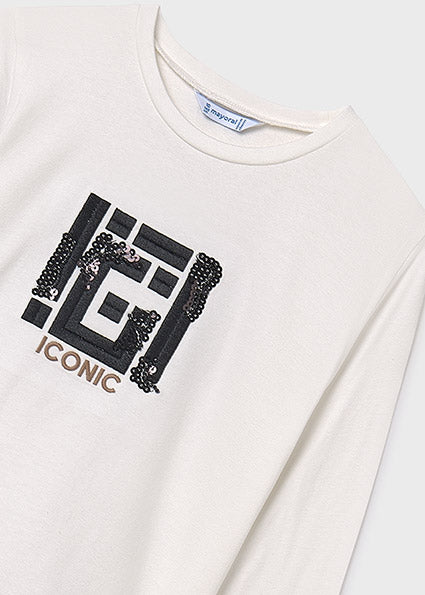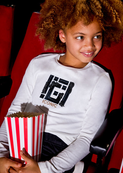 A beautiful cotton model with long sleeves and an oval neckline that combines comfort and a playful design. An ideal choice for every little girl's everyday life. You can combine it with sports bottoms or trousers.