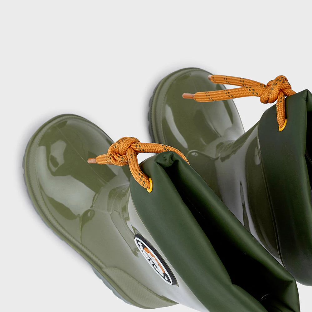 Boy's rubber boots in green Mayoral, perfect for rainy days. Non-slip sole for safe walking without the risk of slipping. Textile laces for accent. Rubber brand logo.