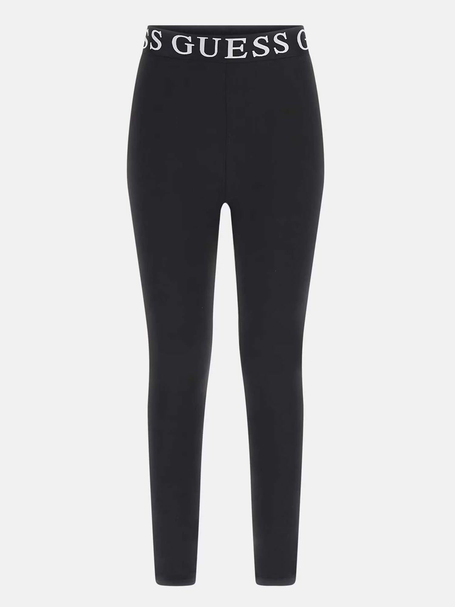 Guess children's leggings. The model is long with an elastic waist. The right side is plain. The material is soft and elastic.
