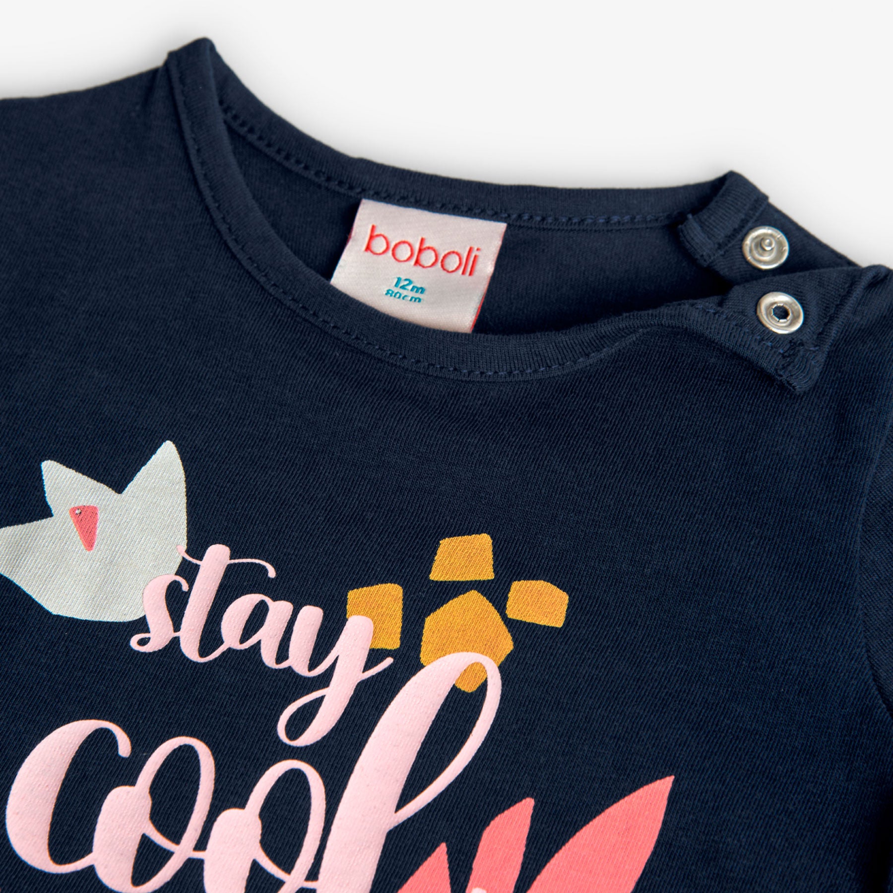 The set is the perfect choice for a stylish and comfortable look for your girl. Made of high-quality fabrics, this set from BOBOLI is a comfortable and practical garment for everyday wear. The set includes a t-shirt and shorts.