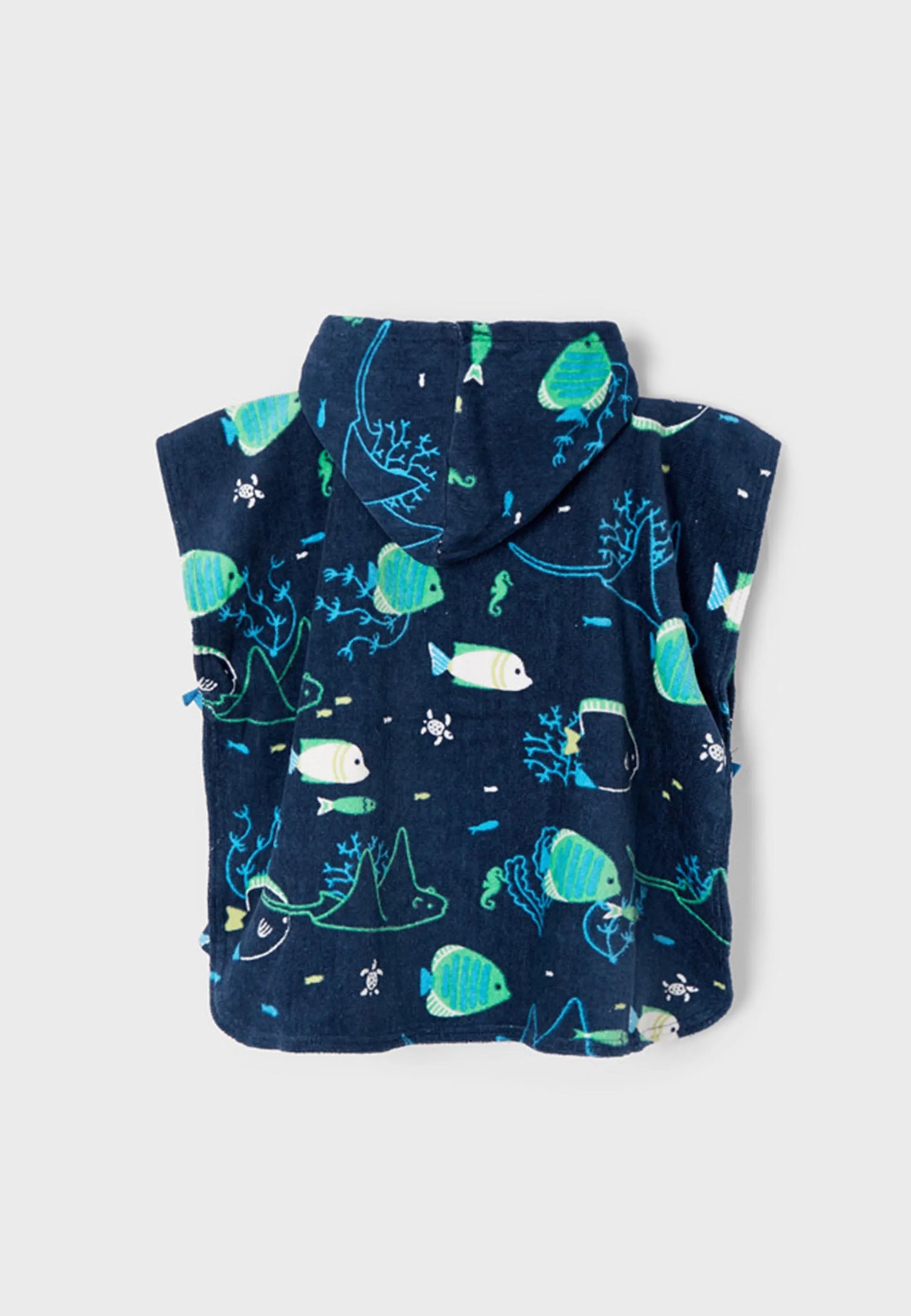 Cotton beach poncho - towel in blue. Made of high-quality cotton fabric, this beach towel is soft and comfortable to use after the beach or pool. With this stylish beach towel from Mayoral, your boy will feel comfortable and fashionable on every visit to the beach or pool.