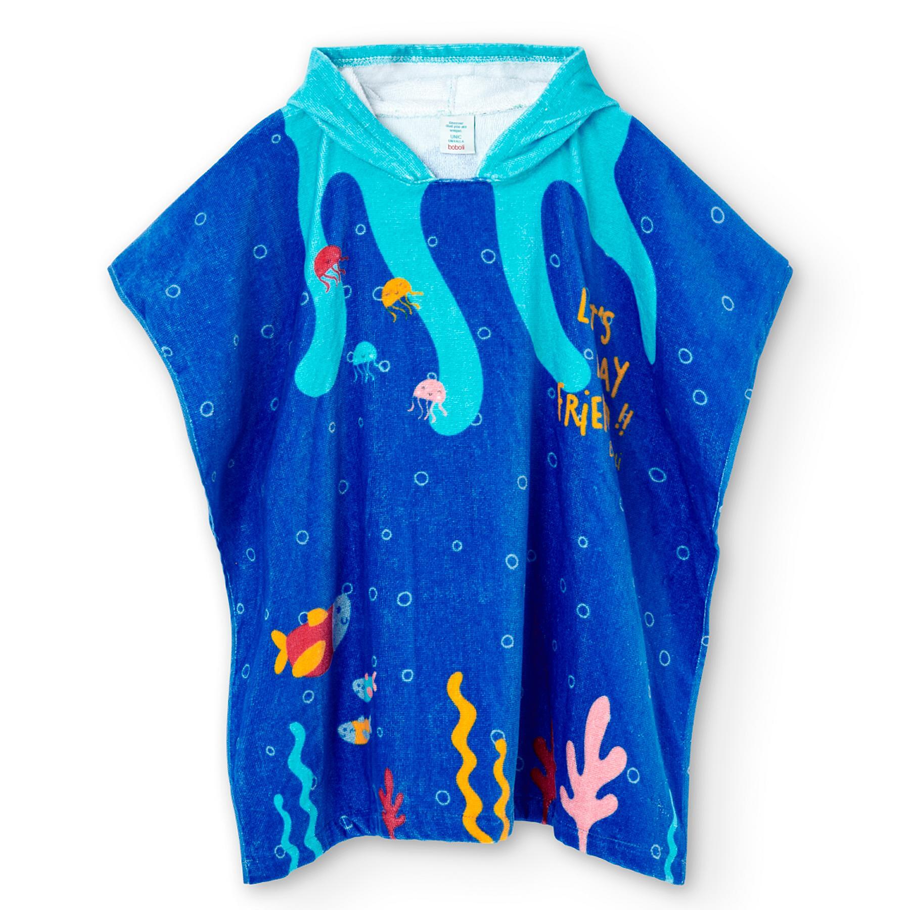 Cotton beach poncho - towel in blue. Made of high-quality cotton fabric, this beach towel is soft and comfortable to use after the beach or pool. With this stylish beach towel from Boboli, your boy will feel comfortable and fashionable on every visit to the beach or pool.