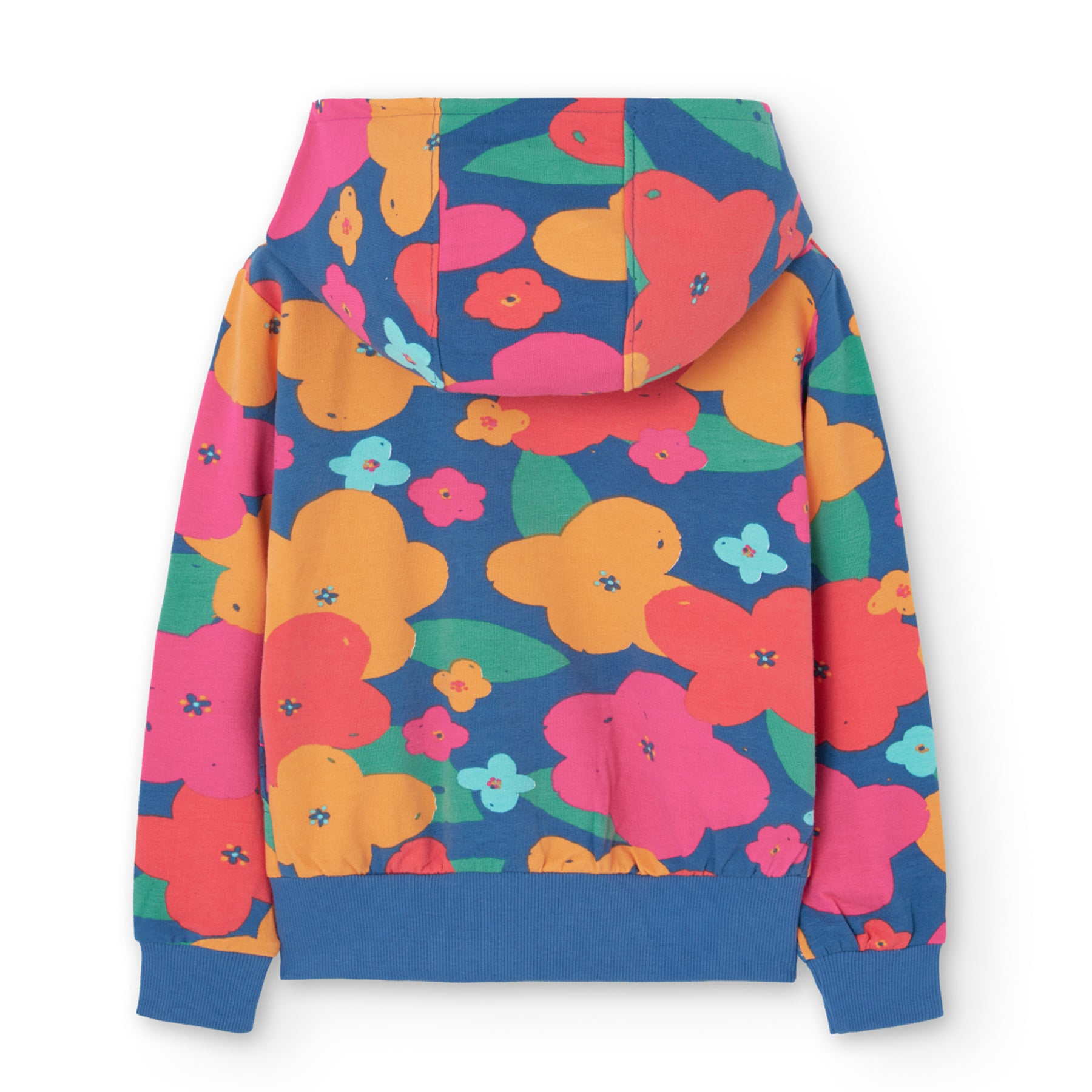 Sweatshirt with side zipper and large flower print for girls BOBOLI.