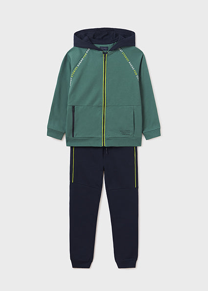 The sports set is the perfect choice for a stylish and comfortable look for your boy. Made of high-quality fabrics, this set from MAYORAL is comfortable and practical for everyday wear. The set is two-piece and consists of a sweatshirt and sports pants.
