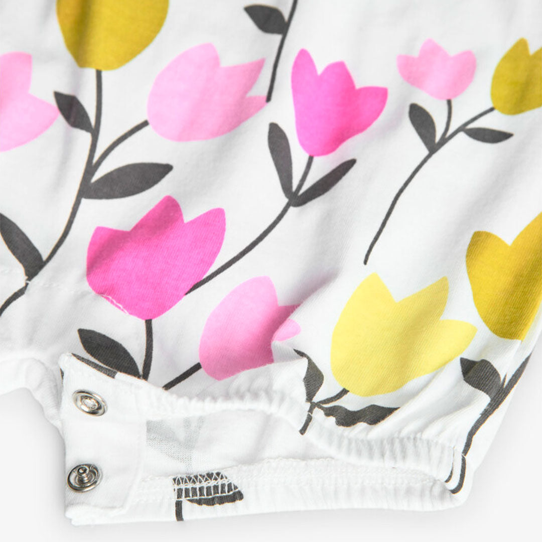 Памучен бебешки гащеризон с къс ръкав от Boboli. Изработени от мека и еластична памучна материя.