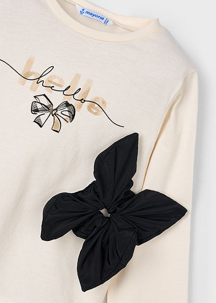 Прекрасен памучен модел с дълги ръкави и овално деколте, който съчетава удобство и игрив дизайн.  Идеален избор за ежедневието на всяко малко момиченце. Може да комбинирате със спортно долнище или панталон.