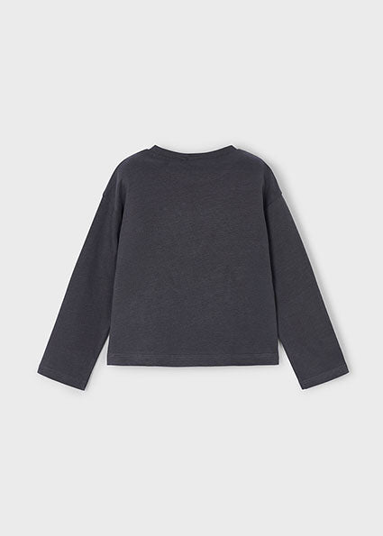 Прекрасен памучен модел с дълги ръкави и овално деколте, който съчетава удобство и игрив дизайн. Идеален избор за ежедневието на всяко малко момиченце. Може да комбинирате със спортно долнище или панталон.