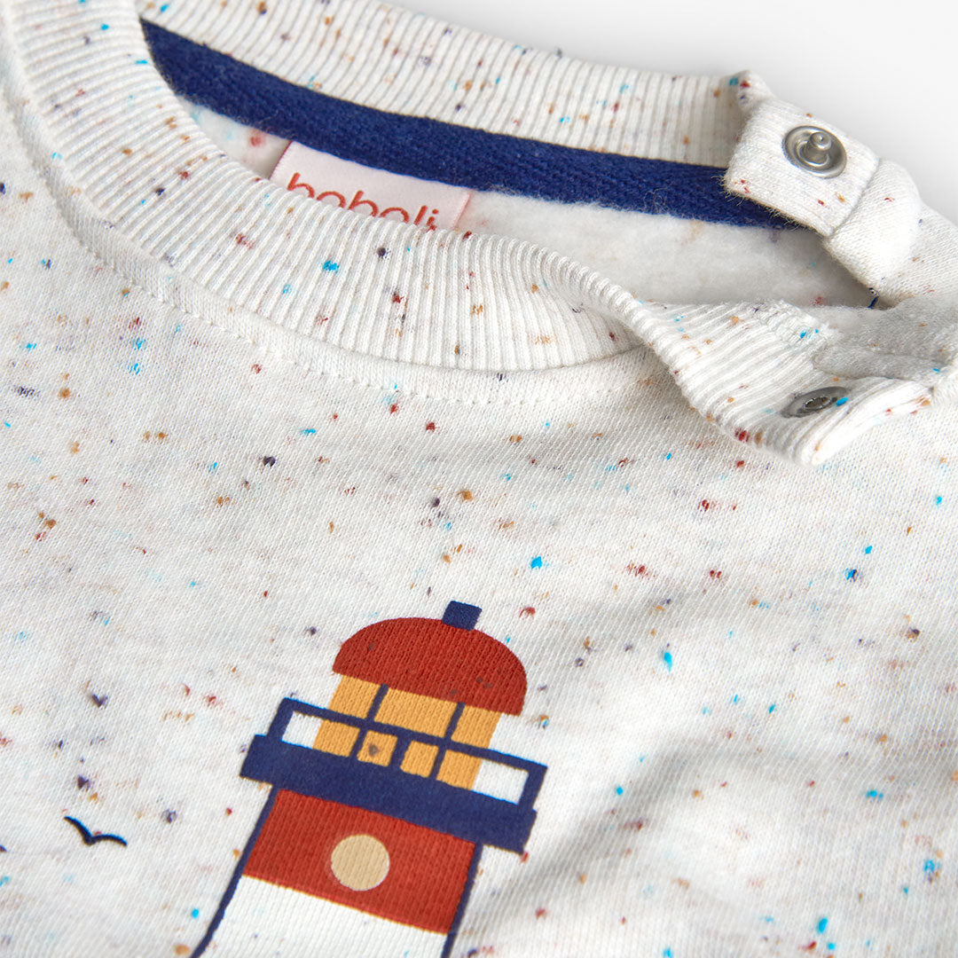 Памучна блуза за момчета, идеална за есенния и зимния сезон, осигуряваща комфорт и топлина с меката си материя. Облото деколте я прави лесна за обличане и гарантира, че малчуганите винаги са стилни.