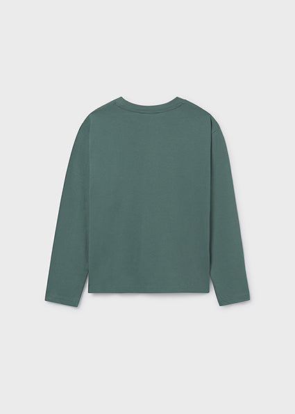 Прекрасен памучен модел с дълги ръкави и овално деколте, който съчетава удобство и игрив дизайн. Идеален избор за ежедневието на всяко малко момиченце. Може да комбинирате със спортно долнище или панталон.
