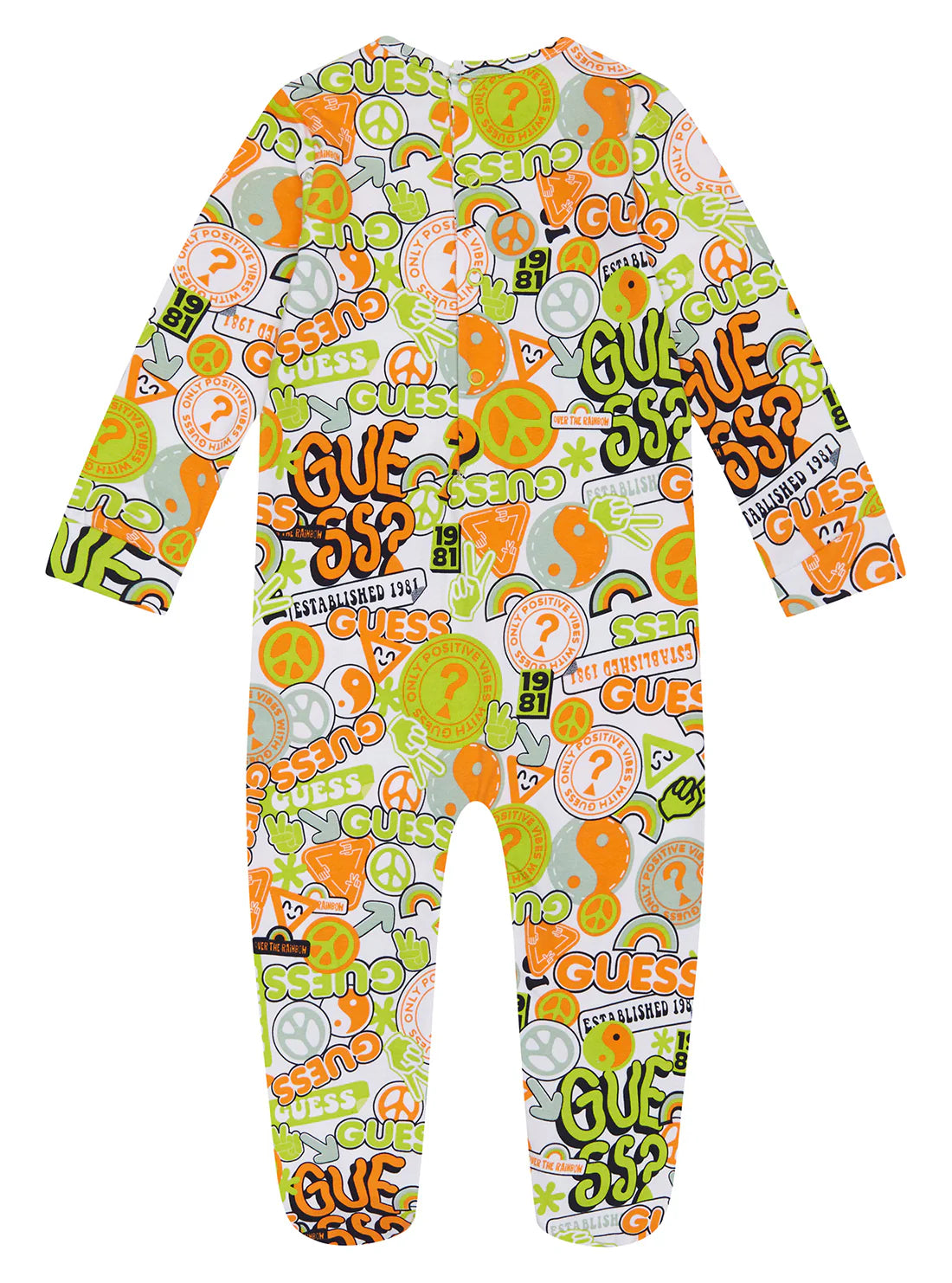 Памучен бебешки гащеризон от GUESS. Изработени от мека и еластична памучна материя. Подходящ за ежедневието.
