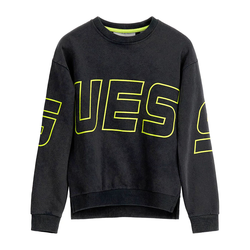 Детска блуза Guess в черно. Тази блуза е удобна, стилна и със сигурност ще бъде любимото облекло на вашето дете.