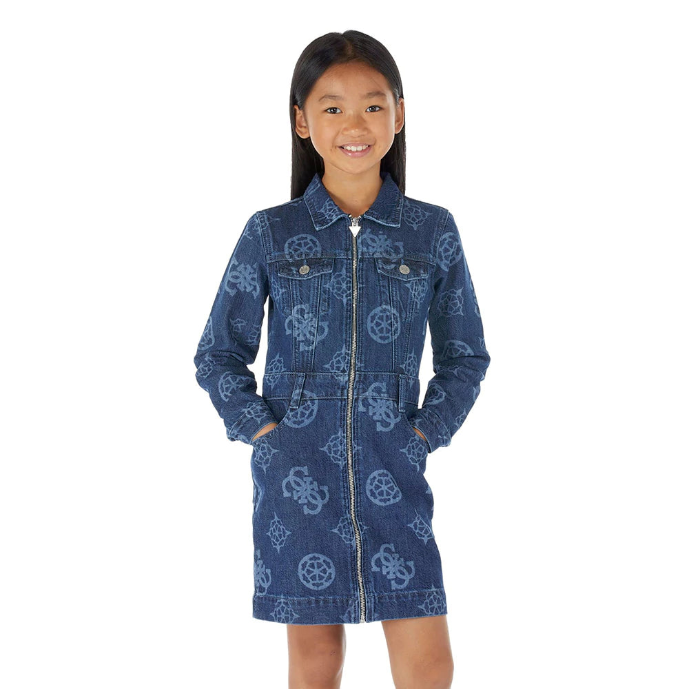 Деним рокля в тъмно синьо за момиче с лога Guess. Страхотен дизайн, подходящ за всеки ден. Джобове отпред. Изработена от висококачествени материали. Много приятна на допир.