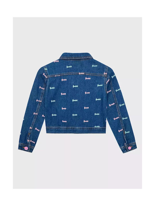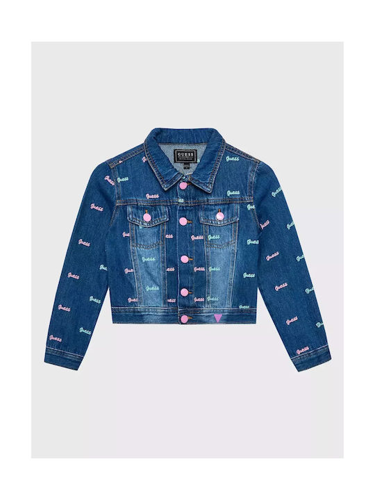 Дънково яке изцяло покрито с лога на марката Guess. Страхотен дизайн, който лесно се комбинира с голям набор от дрехи. Много стилно и удобно. Закопчава се с копчета отпред.