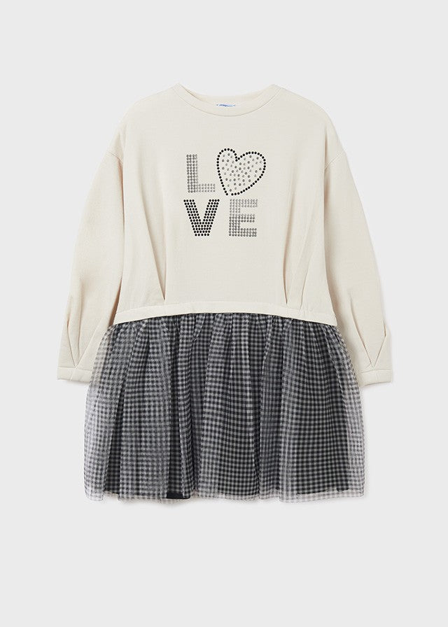 Роклята е перфектният избор за стилна и удобна визия на вашето момиче. Изработена от висококачествени материали, тази рокля от MAYORAL е удобна и практична дреха за всекидневно носене.  С деликатната си материя и очарователен дизайн със сигурност ще грабне вниманието, където и да отиде вашето дете. Идеален за специални поводи или официални събития е перфектното допълнение към гардероба.