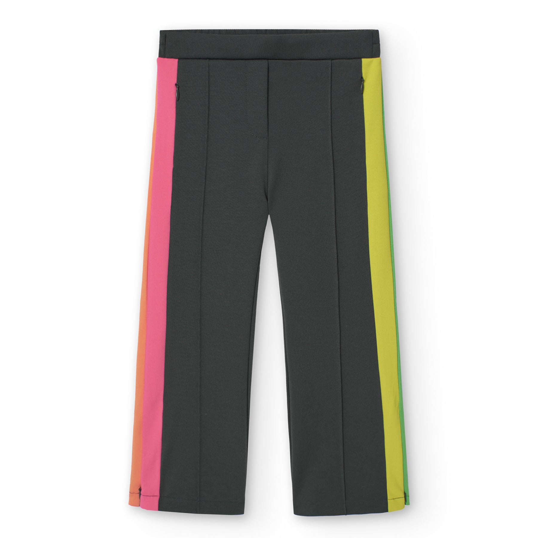 Панталон с права кройка за момиче BOBOLI. Сив цвят с неонов кант в различни цветове от двете страни на панталона.