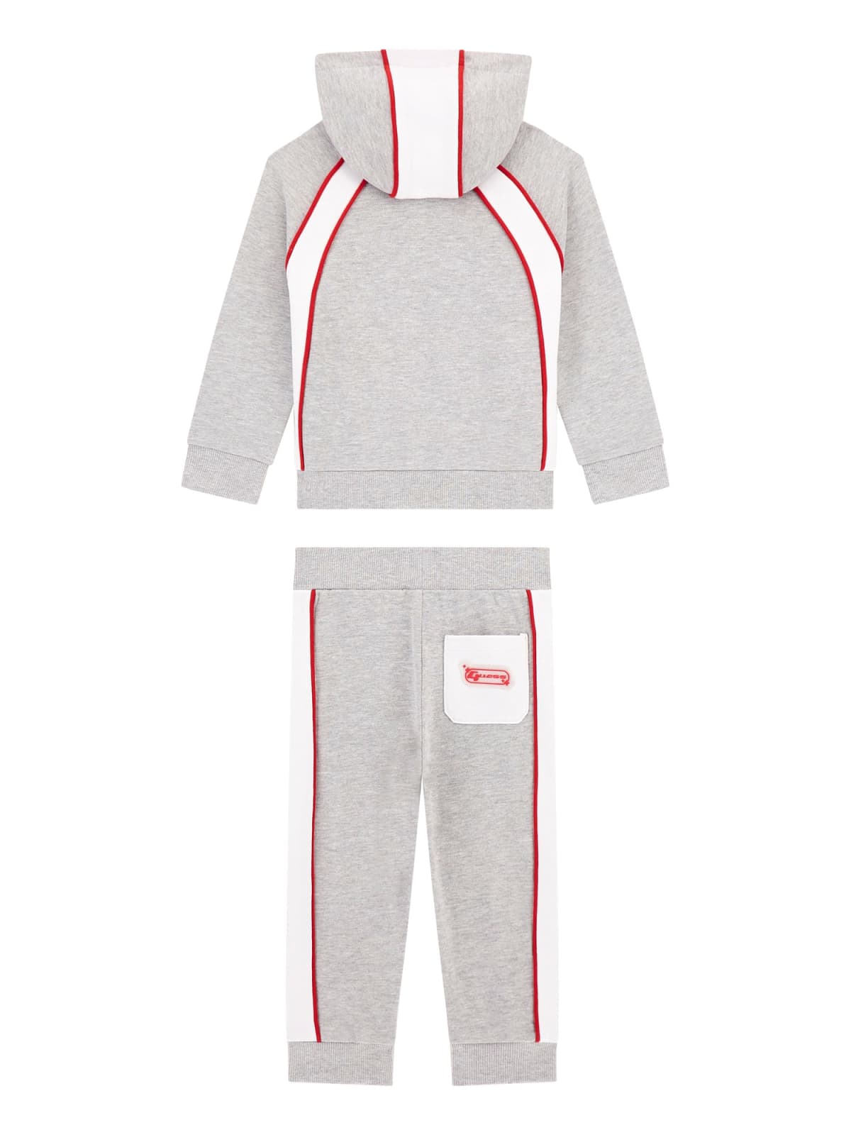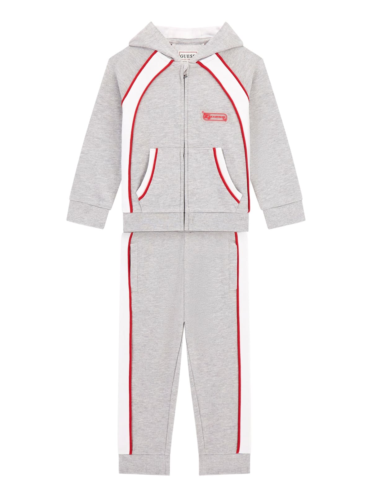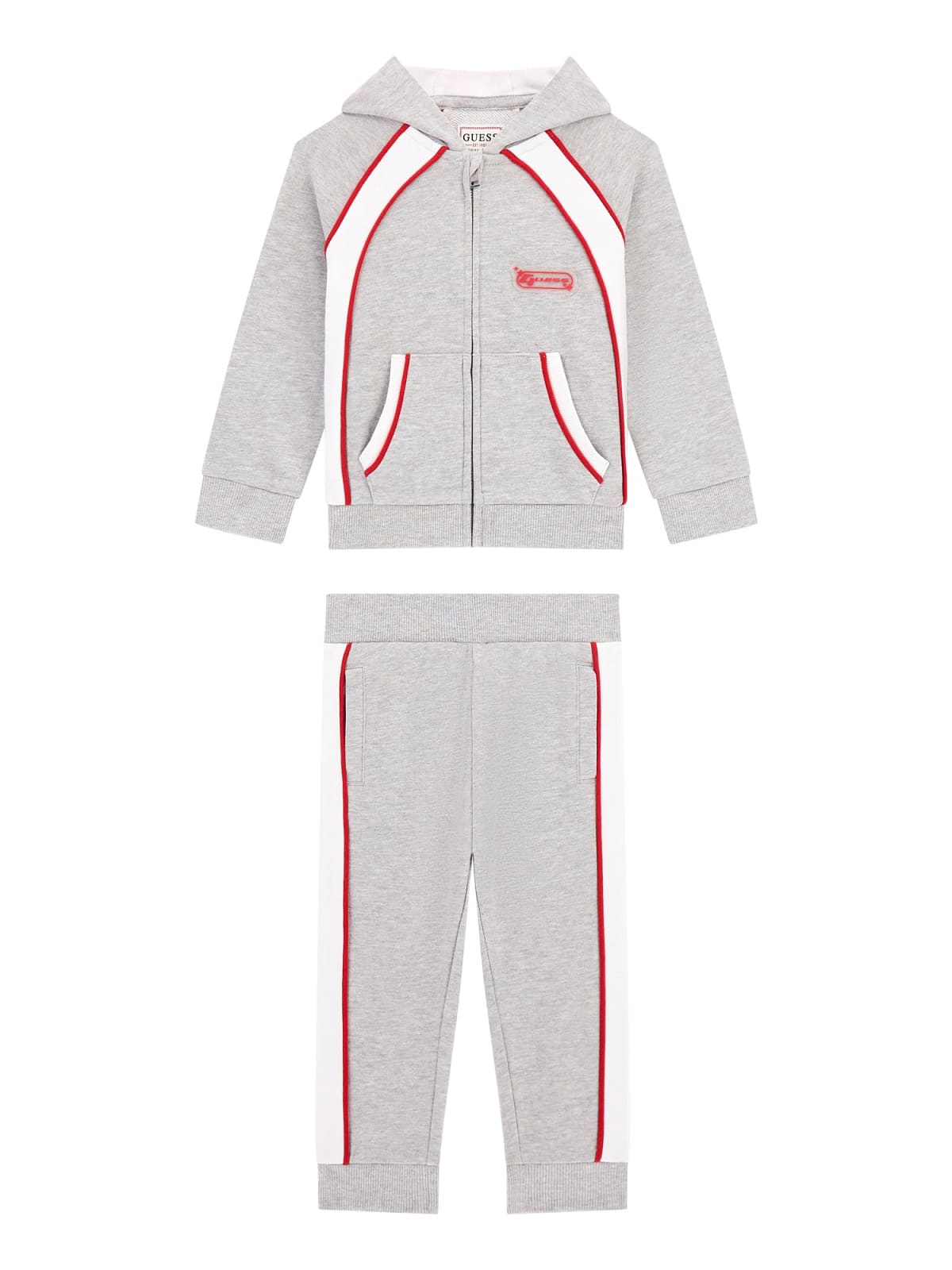 Този комплект на Guess е перфектната дреха за всяко дете, което обича стилната и удобна дреха. Състои се от горнище с цип и спортен панталон.