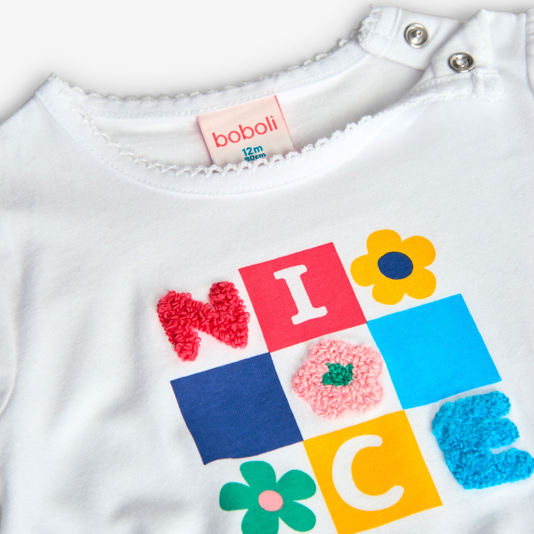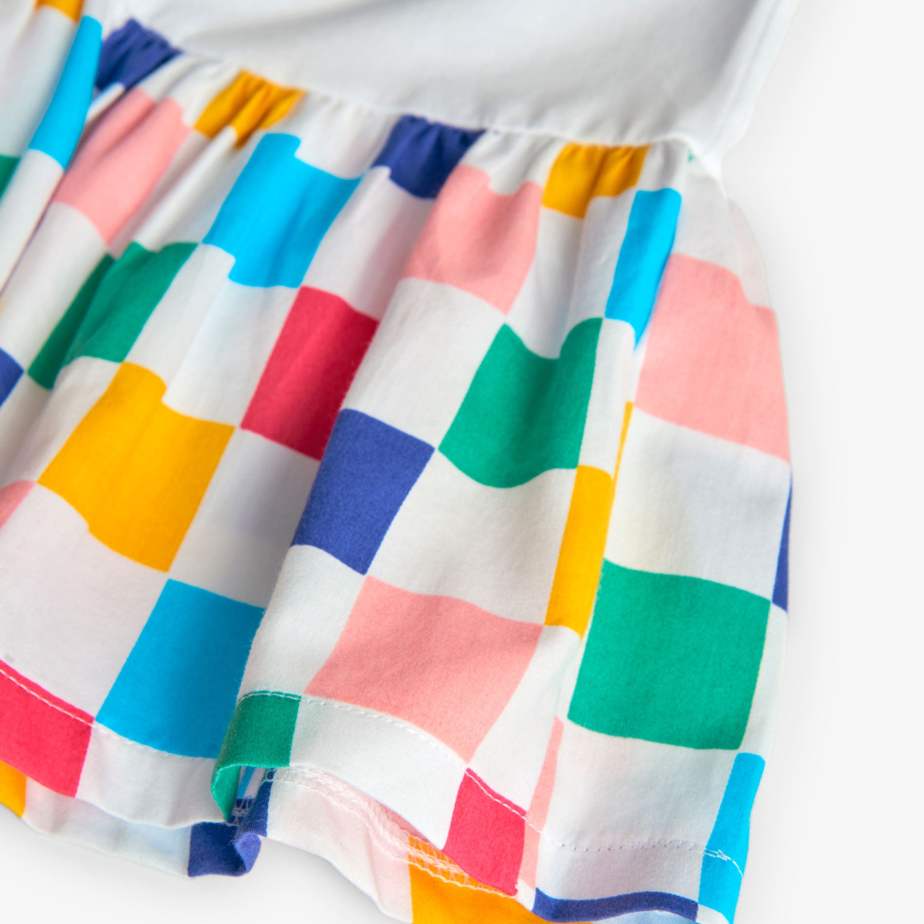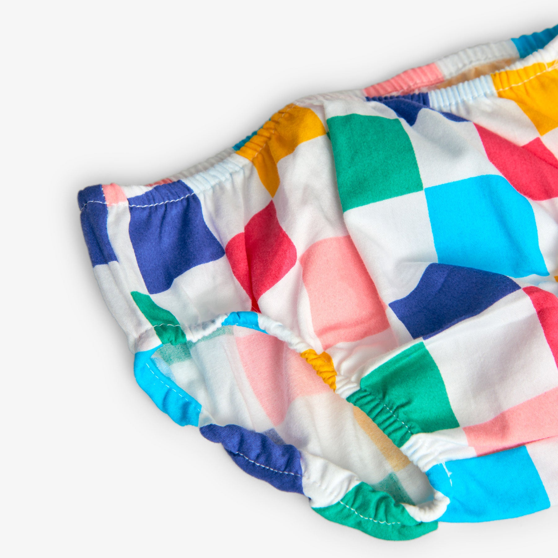Комплектът е подходящ както за ежедневието, така и за специални поводи, като например рождени дни или семейни събирания. С този комплект вашето дете ще изглежда сладко и модерно, готово да покори всички около себе си с неповторимия си стил. Комплекта включва рокля и гащички.
