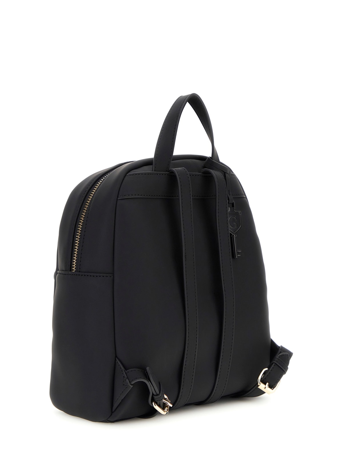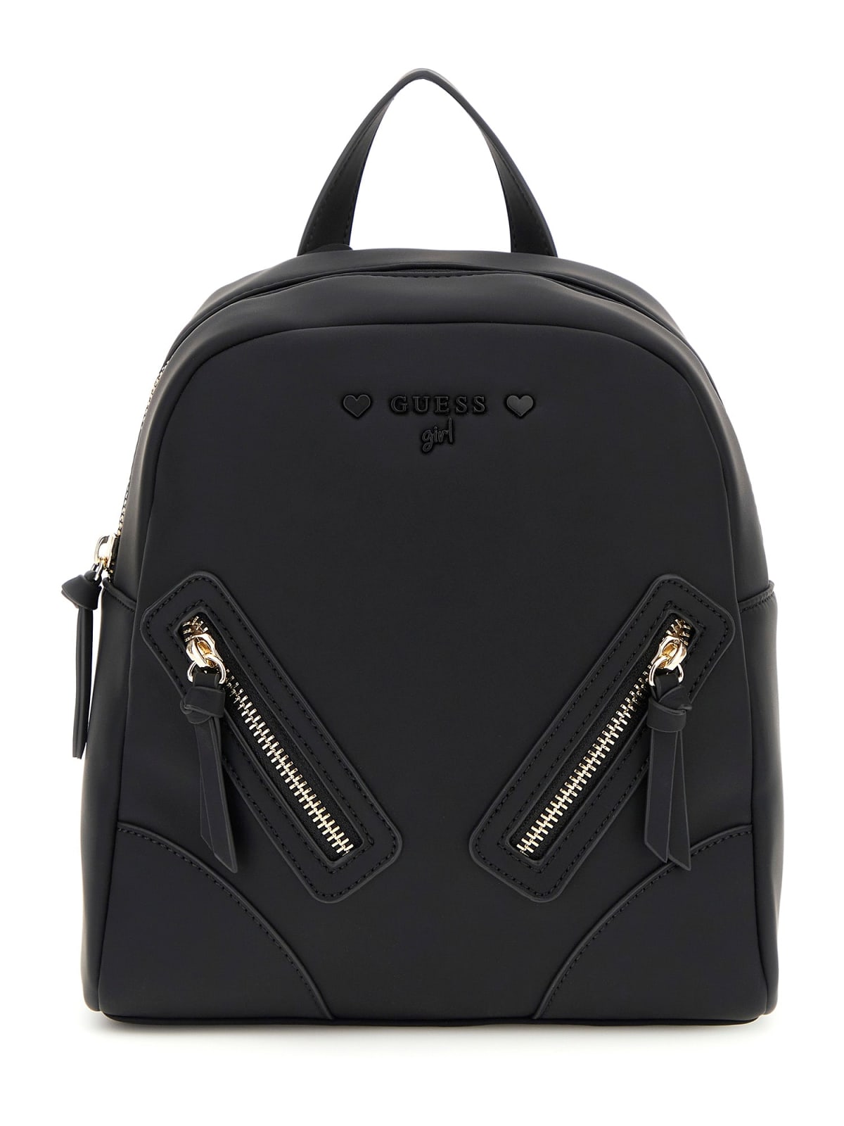 Раница от колекция Guess. Моделът е направен от изкуствена кожа. Лек и удобен модел, идеален за ежедневно носене. Основно отделение се закопчава с цип. Два джоба с цип отпред, които улесняват безопасното съхранение на малки предмети. Няма вътрешни джобове. Къса дръжка за удобно носене в ръка. Регулируемите презрамки ви позволяват индивидуално да регулирате дължината им според потребителя. Не събира формат А4.