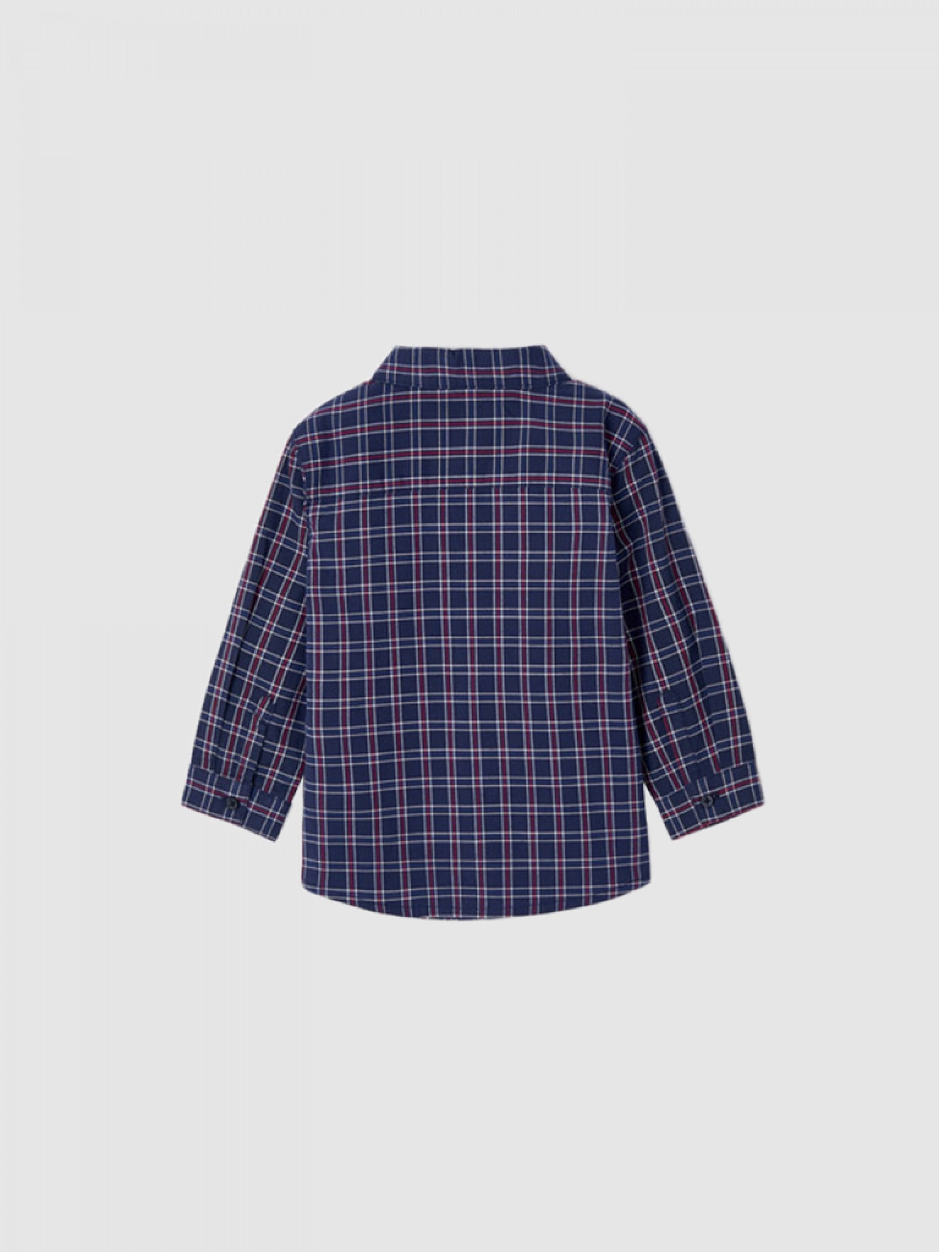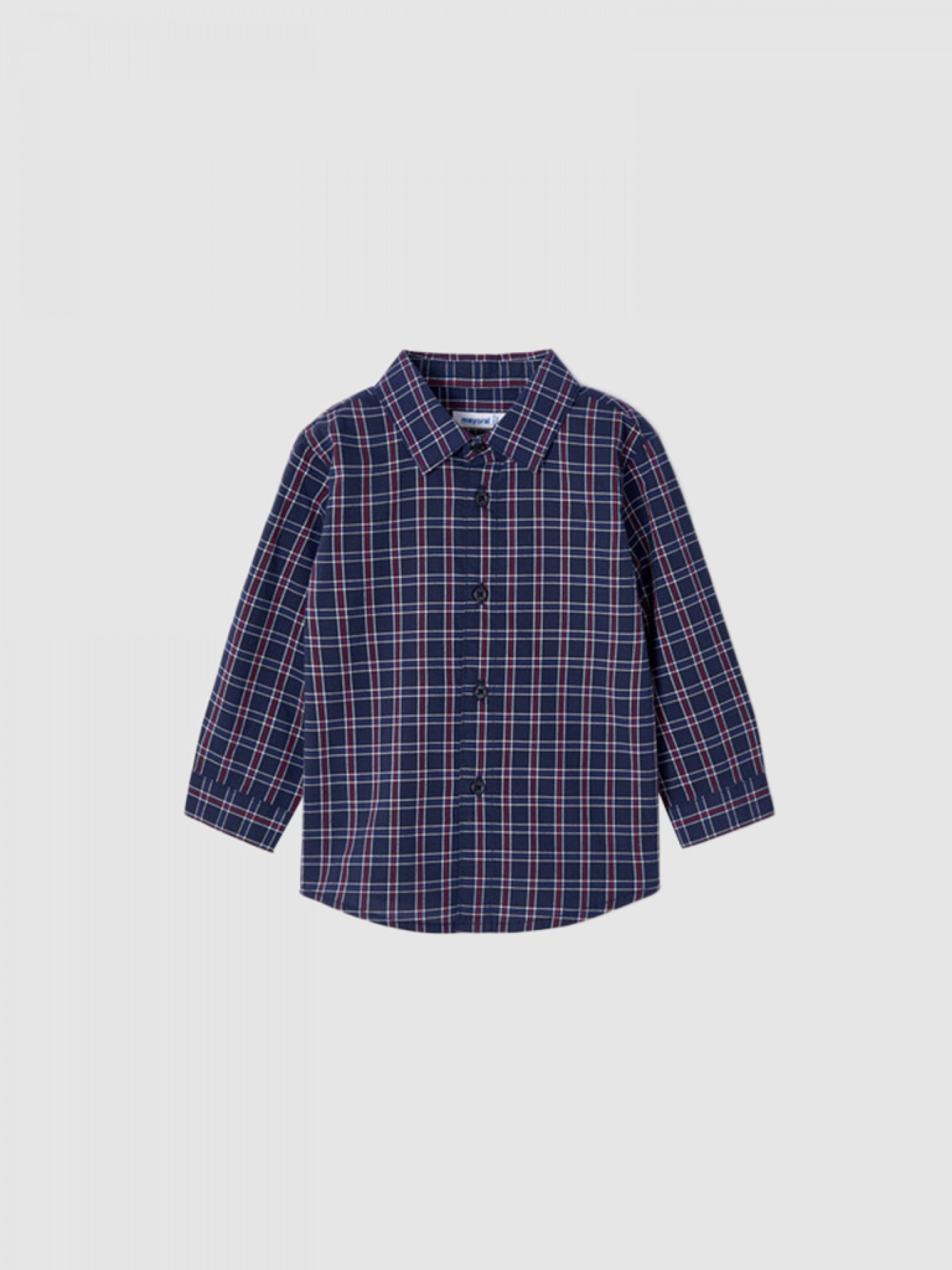 Официалната риза с дълъг ръкав в тъмно син цвят е перфектният избор за стилна и елегантна визия на бебе момче. Изработена от висококачествени материали, тази риза от MAYORAL е удобна и практична за всекидневно носене. Идеална за специални поводи или официални събития, тази риза е перфектното допълнение към гардероба на вашия малчуган.