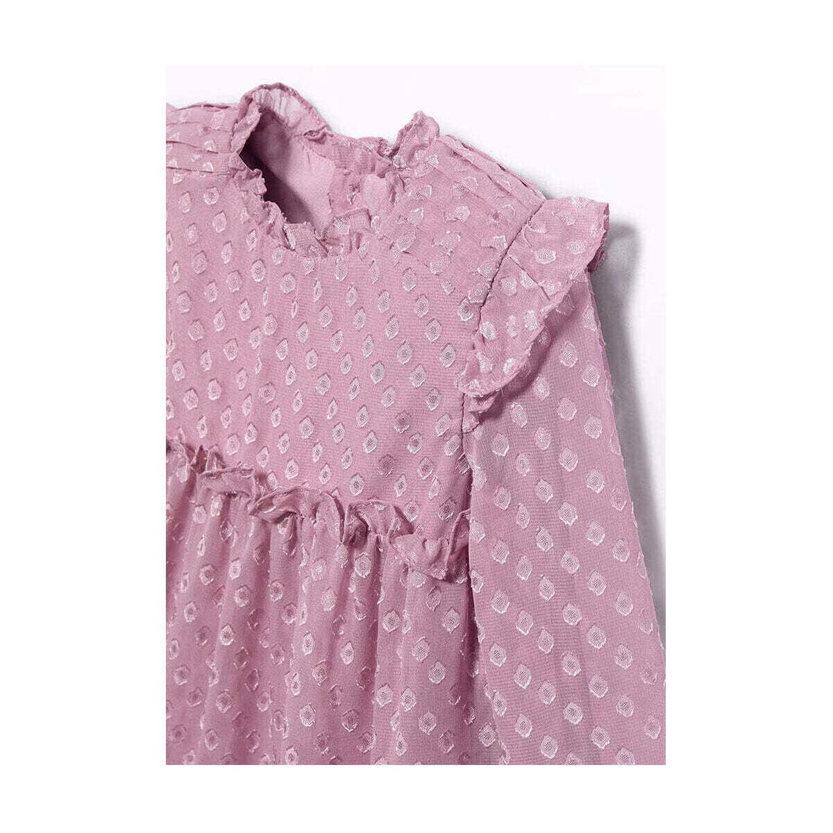 Роклята е перфектният избор за стилна и удобна визия на вашето момиче. С деликатната си материя и очарователен дизайн със сигурност ще грабне вниманието, където и да отиде вашето дете. Идеален за специални поводи или официални събития и е перфектното допълнение към гардероба.