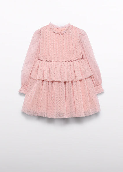 Роклята е перфектният избор за стилна и удобна визия на вашето момиче. С деликатната си материя и очарователен дизайн със сигурност ще грабне вниманието, където и да отиде вашето дете. Идеален за специални поводи или официални събития и е перфектното допълнение към гардероба.