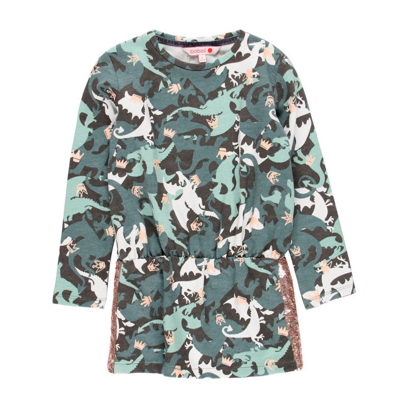 Роклята е перфектният избор за стилна и удобна визия на вашето момиче. Изработена от висококачествени материали, тази рокля от BOBOLI е удобна и практична дреха за всекидневно носене. С деликатната си материя и очарователен дизайн със сигурност ще грабне вниманието, където и да отиде вашето дете. Идеален за специални поводи или официални събития е перфектното допълнение към гардероба.