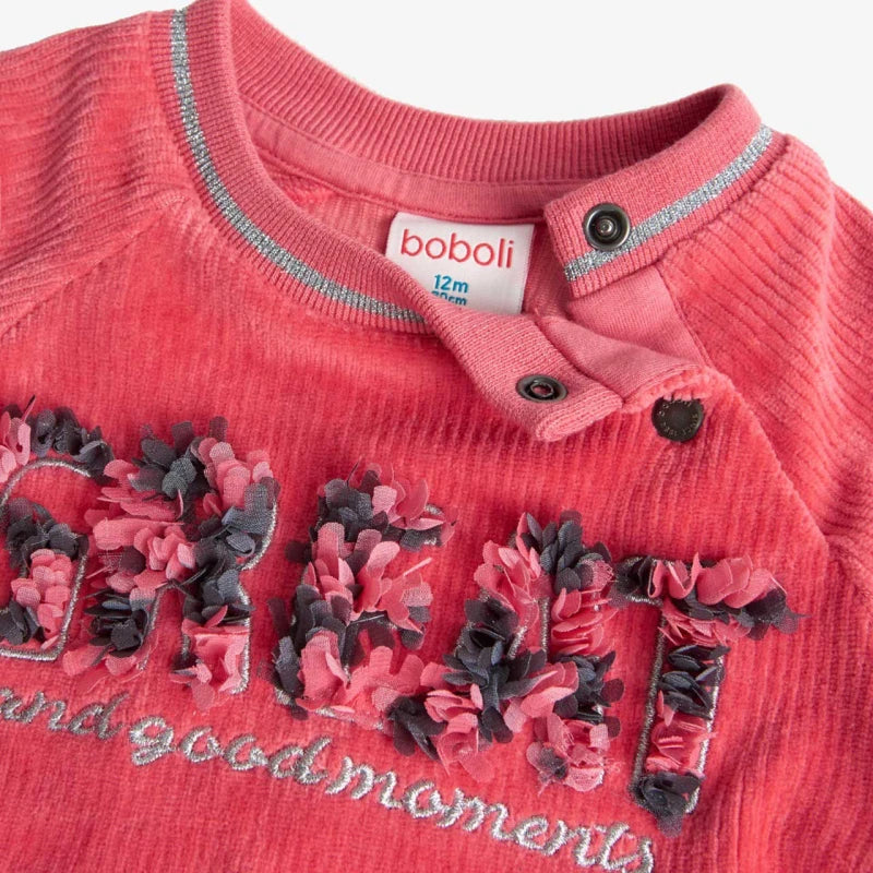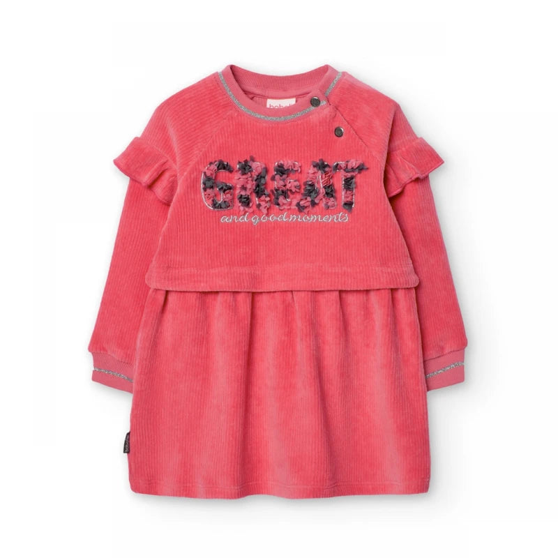 Роклята е перфектният избор за стилна и удобна визия на вашето момиче. Изработена от висококачествени материи, тази рокля от BOBOLI е удобна и практична дреха за всекидневно носене. С деликатната си материя и очарователен дизайн със сигурност ще грабне вниманието, където и да отиде вашето дете. Идеален за специални поводи или официални събития е перфектното допълнение към гардероба.