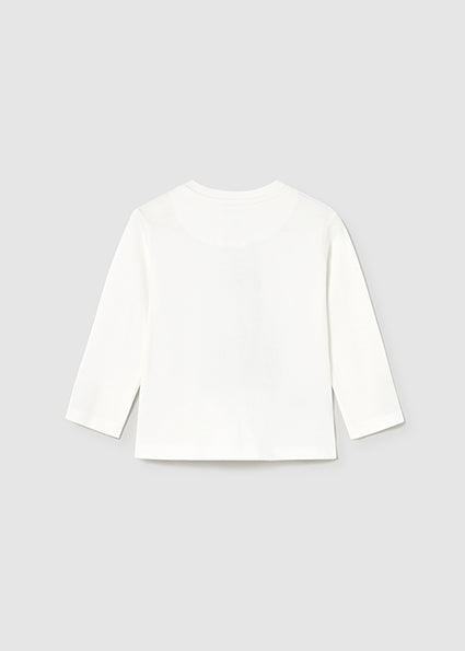 Бебешката блуза е с дълъг ръкав, обло бие, тик-так закопчаване на едното рамо и интересна апликация отпред. Бебешката блуза за момче е изработена от качествена и комфортна памучна материя.