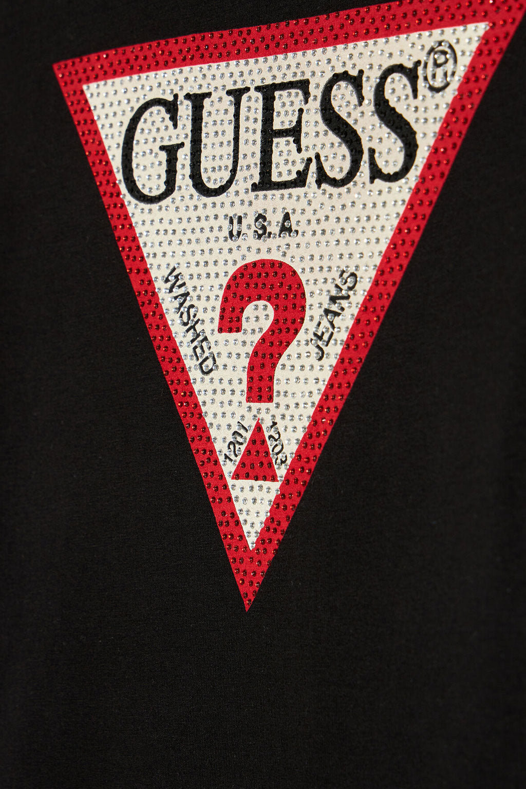 Тениска за момиче Guess. Моделът е направен от тънка и еластична материя. Изработена от много фин памук. Надписи отпред.