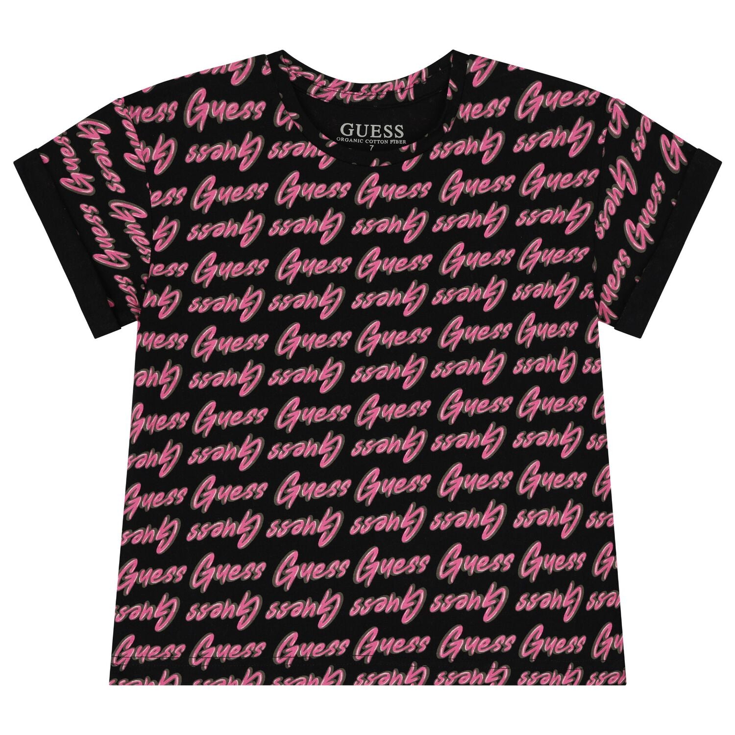 Тениска за момиче Guess. Моделът е направен от тънка и еластична материя. Изработена от много фин памук. Надписи отпред.