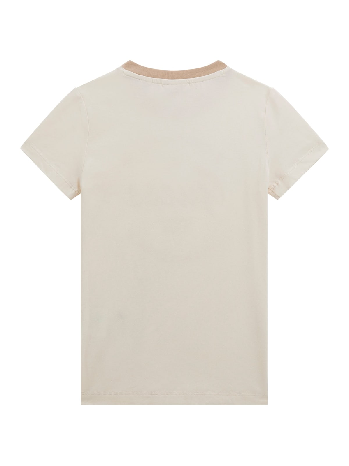 Тениска за момиче Guess. Моделът е направен от тънка и еластична материя. Изработена от много фин памук. Надписи отпред.