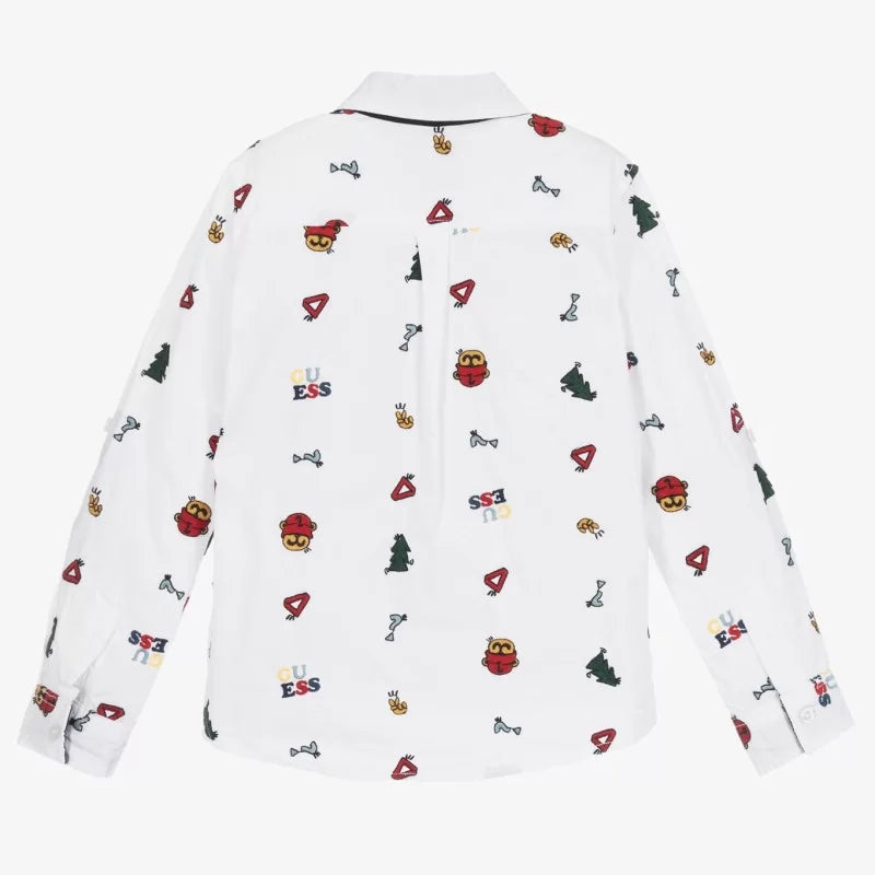 Изберете най-подходящата комбинация за Вашето момче. Риза за момче с дълъг ръкав Guess. Страхотен дизайн, изработена от висококачествена материя. Ръкавите имат опция за навиване. Закопчава се с копчета отпред. Има джобче от дясната страна