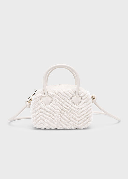 Чанта за момиче, в която могат да се прибират задължителните аксесоари. Практично и забавно допълнение за всеки стил. Мека и приятна материя на външната част от косъм.