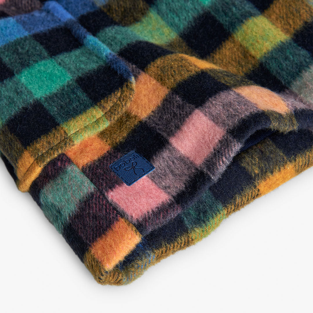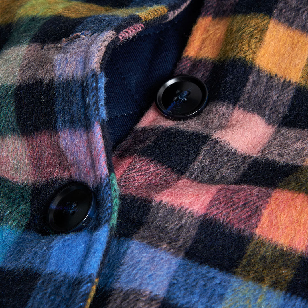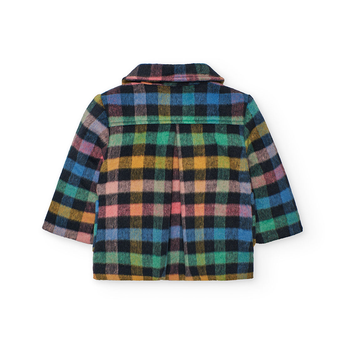 Яке с многоцветен кариран дизайн, идеално за зимата. Изработено от топла и удобна материя, то е с класическа яка и големи предни копчета за лесно закопчаване.