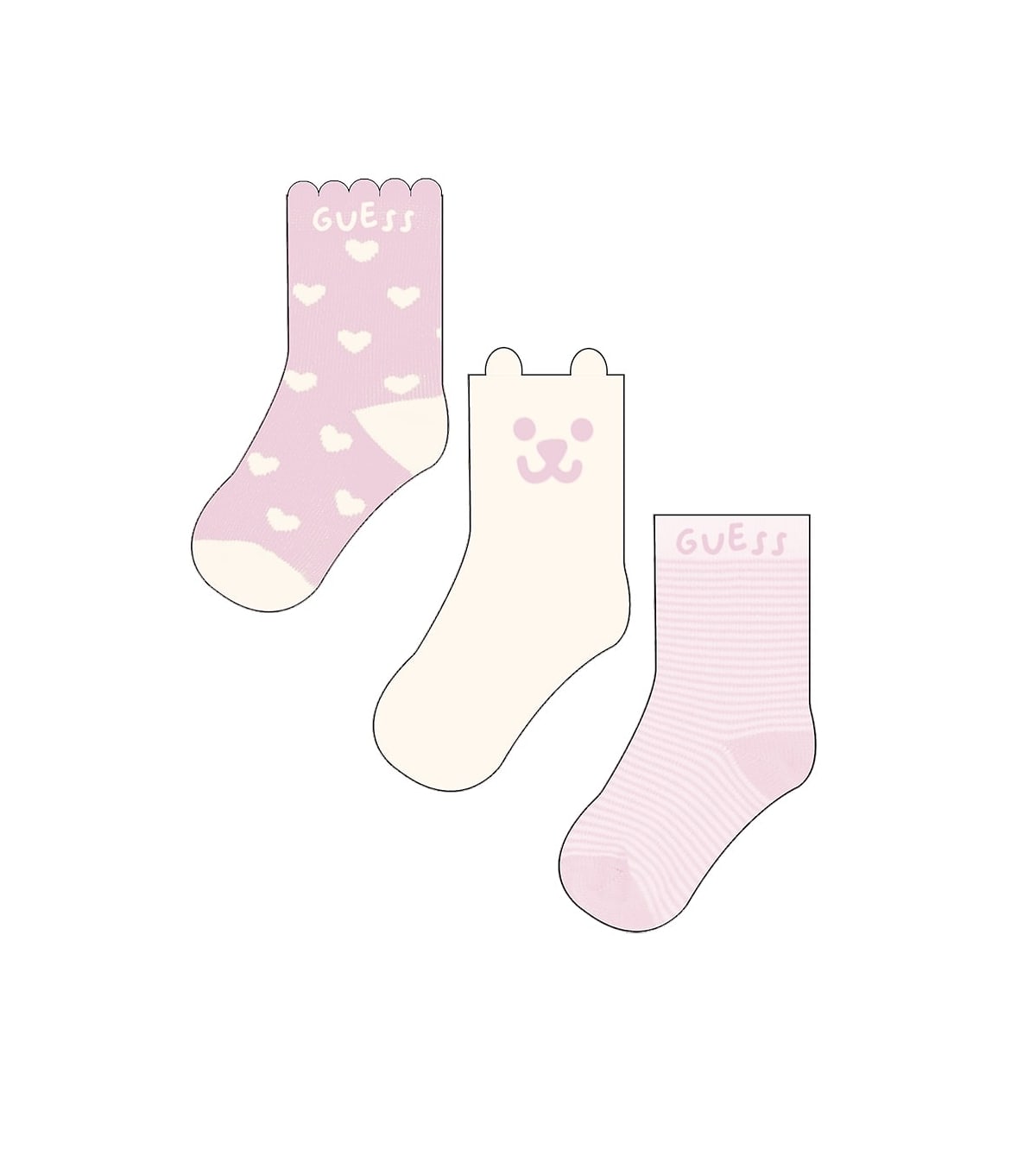 Тези нежни сладки чорапки са идеални за бебето ви. Изработени са от висококачествен и мек материал в бледо розов цвят, който придава усещане за нежност и комфорт. Детайлите Guess добавят стил и изтънченост към облеклото на малката принцеса. Чорапките са подходящи както за всекидневно носене, така и за специални поводи. С тези чорапки вашето бебе ще бъде не само удобно облечено, но и изглеждащо прекрасно.